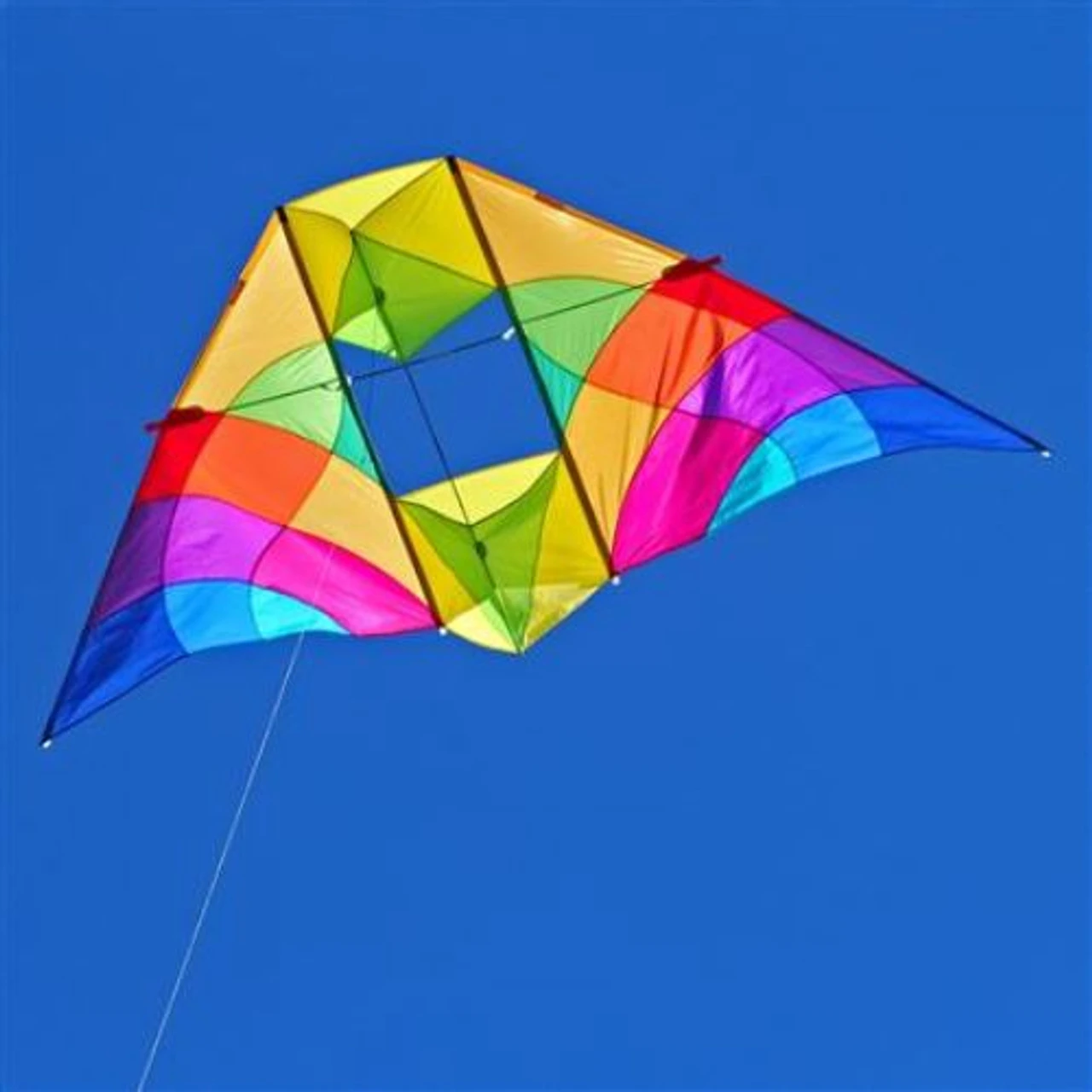 The Alpine DC is one of the best light-wind kites you can buy, and its range extends right up to 20 mph. It’s a classic treasured by many kite-fliers and should have a place in any collection. 10-ft. across, it’s worth the price to fly when nobody else can. Made of ripstop nylon with carbon spars. Dimensions are 10.0 ft x 4ft 3 in, in 50 inch case. Wind range is 3 to 20 mph and there are 4 tail attachment points. 75 to 100 lb. line is recommended.