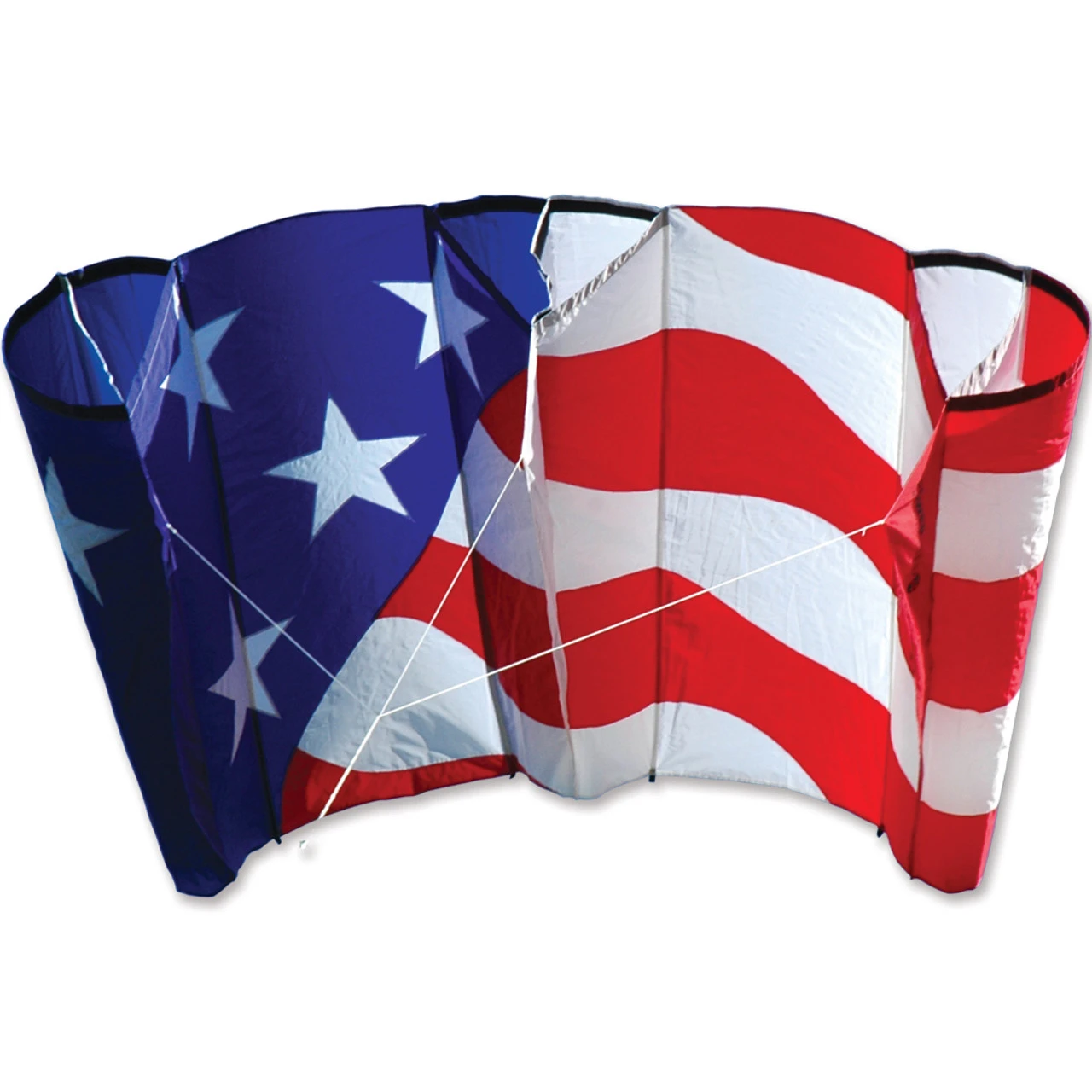 The Power Sled is an indispensable kite for all serious fliers. Â The 24 is a medium-sized model, still powerful enough to lift quite a bit of line laundry, but easily handled in a wide wind range. Â It flies well with the supplied drogue tail, which is also the storage bag, but can fly without it or with another tail of your choice. Â Easy to transport, no assembly needed, and simple to fly – what more could you ask for? Â This Patriotic version should be particularly popular will all American fliers.