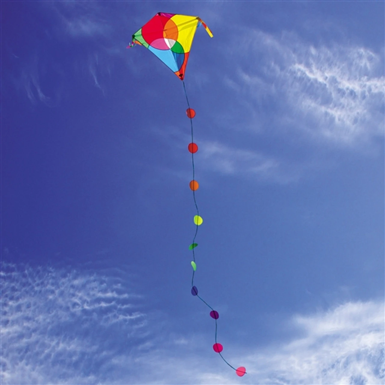 From its bubbly tail to the color blending bubbles on the kite, this diamond is bubble-tastic. Made of ripstop nylon with fiberglass spars. 2’-3” x 2’-4”. 15-ft. nylon tail and 39” case included. Wind range: 5 to 25 mph. Ready to Fly with 200’ of 50-lb. braided polyester line on a handle.