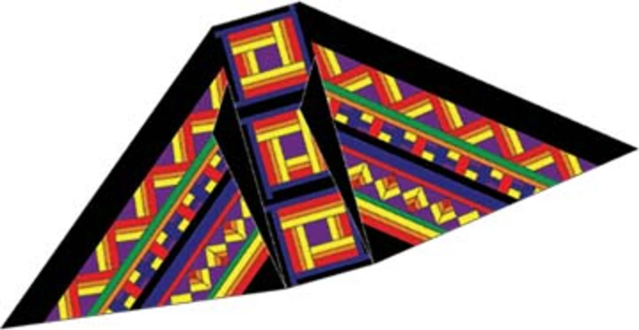 A delta with a difference, this is a real work of art as well as a superb flier. Â From American designer Barbara Meyer, it’s a kite which will stand out anywhere. Â The design is all sewn in, not printed, and when you’re not flying it, you can hang it on the wall to impress visitors!