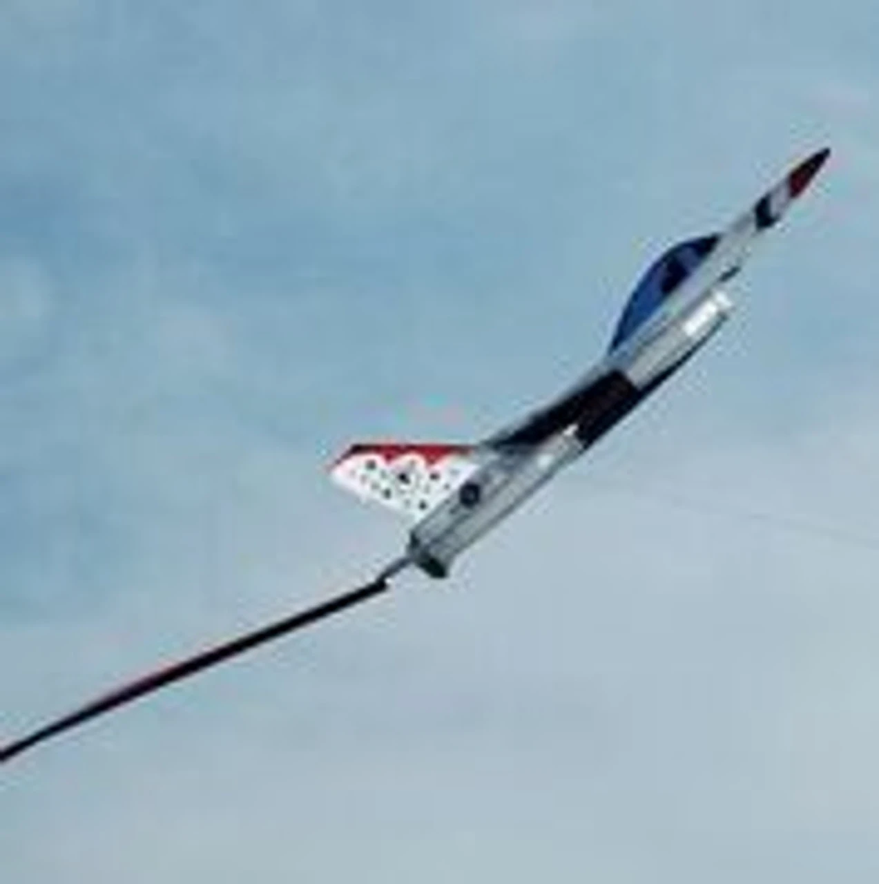 This “Thunderbird” Kite, one of several Premier’s Jets takes to the skies with realistic shapes and markings. It is easy to fly with long 20 foot streamer tails and looks like the real thing in the air. All of the Jets come with two suspension loops so they are easy to hang at any angle in a room for display.